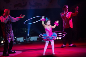 Im letzten Auftritt versuchen sich die beiden Spaßmacher vergebens als Hula Hoop Artisten, und die kleine, erst fünfjährige Serena muss mit einem gekonnten Auftritt und bereits beachtlichem Können die Situation retten.