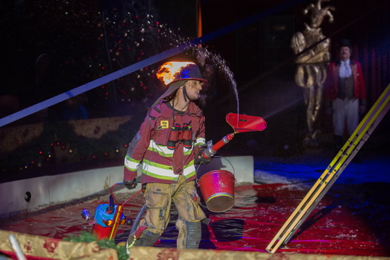 „Feuerwehrmann“ Alex ist eifrig bemüht, einen von ihm selbst entfachten Brand in der Kuppel zu löschen. Slapstick und Comedy und Akrobatik an einer Leiter, die mittig an einer Achse befestigt ist, sind die Zutaten zu einem turbulenten Auftritt, der die kleinen Besucher begeistert mitgehen lässt.