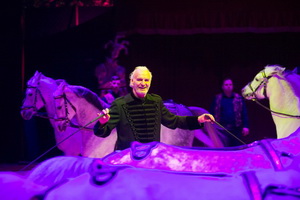 Direktor Alberto Althoff, der als Zeltmeister und Betriebsleiter für den Aufbau und die Technik des Weihnachtscircus verantwortlich ist, präsentiert eine formidable Pferdefreiheit. Mit großer Leichtigkeit, Ruhe und Souveränität lässt der Meisterdresseur, der viele Jahre lang mit Pferden, Elefanten und allen Arten Exoten gearbeitet hat, acht schneeweiße Araberhengste ihre Lauffiguren ausführen. Fehlerfrei werden die vielseitigen Abläufe ausgeführt und einige furiose Da Capo Steiger beenden den Auftritt in idealer Weise.