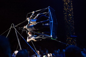 Vor der Pause ist die Truppe „Art Stream“ mit ihrem Auftritt an der Russischen Schaukel zu erleben. Das Requisit ist in der Mittelloge aufgebaut und von dort starten die hohen und weiten Flüge, die in einer vor dem Artisteneingang hängenden Plane gelandet werden.
