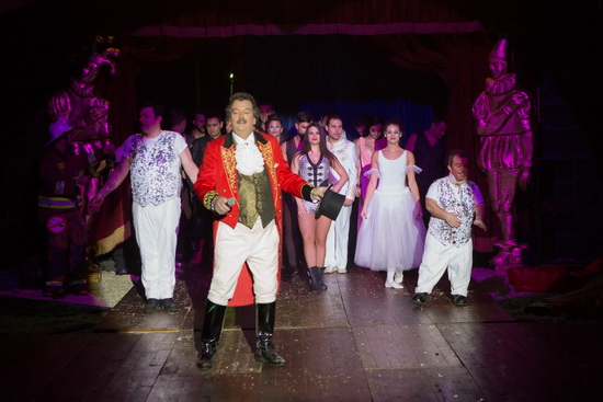 Im Chapiteau steht ein großes Schalensitzgradin und elegante, stoffbespannte Logen bereit, die zahlreichen Besucher aufzunehmen. Mit Tannengirlanden in den zahllose Lichter funkeln sind die Masten und Traversen der Lichtanlage vollständig verkleidet. Auf dem dekorativen Artisteneingang aus rotem Samt hat die sechsköpfige Circusband ihren Platz.