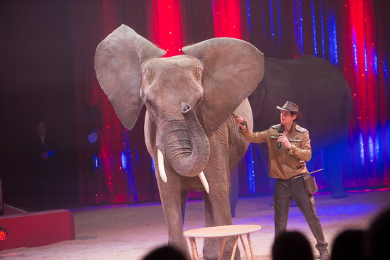 Erwin Frankello war mit zwei Dressurdarbietungen zu erleben. Zunächst folgen ihm zwei afrikanische Elefanten in den roten Ring. Die umfassende Trickfolge beginnt mit Laufarbeit, an die sich verschiedene akrobatische Übungen, wie z. B. hochsitzen anschließen. Großes Vertrauen zwischen dem Tierlehrer und seinen Schützlingen wird effektvoll demonstriert, indem ein Elefant seinen Fuß nur wenige Zentimeter über den Kopf des liegenden Dompteurs hält und anschließend über Erwin Frankello abliegt. Spielerisch geht es zu beim Elefanten Hula Hoop und beim lösen von Rechenaufgaben.
