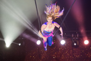 Maria Andreeva vereint in ihrer Darbietung Elemente aus zwei Genres der Luftartistik. Zunächst arbeitet sie in einem wilden Wirbel einige Tricks am Vertikalseil. Nun erfolgt ein Wechsel ans Schwungseil, an dem die weiteren Aktionen erfolgen. Die für dieses Requisit charakteristischen Abfaller leiden allerdings in ihrer Publikumswirksamkeit unter dem permanenten Longeneinsatz.