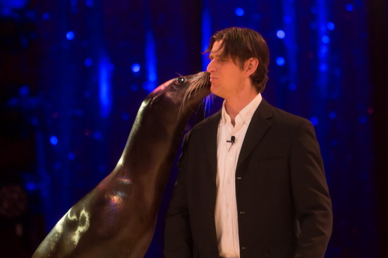 Auch die beiden Seelöwen beherrschen ein immens umfangreiches Repertoire. Sie balancieren Bälle, fangen Ringe und werfen sich diese gegenseitig zu und zeigen gekonnte Flossenstände. Schauspielerische Elemente werden gleichfalls geboten.