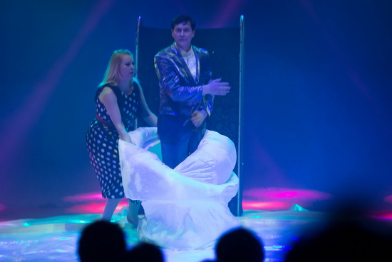 Der Quick Change des Duo Monastyrsky sorgt bei vielen Zuschauern für Verblüffung. Blitzschnell wechseln beide Partner die Kostüme. Rasant und wie von Geisterhand folgen die mannigfaltigen Wechsel der Kleidung aufeinander. Elegante Kostüme kommen zum Einsatz, die sich zunächst stilsicher auf die Farben schwarz und weiß beschränken und zum Höhepunkt des Auftritts in rot wechseln.