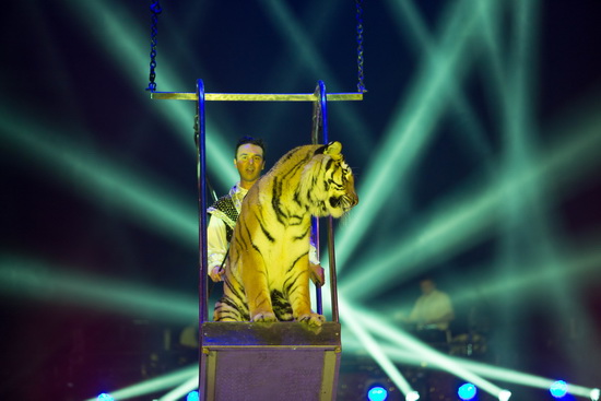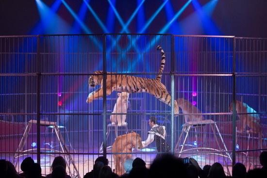 Stefano Nones, Sohn der kürzlich verstorbenen italienischen Circuskönigin Moira Orfei, präsentiert seine gemischte Raubtiergruppe nach der Pause. Sieben Löwen und Tiger, darunter auch weiße Tiere, beherrschen ein umfangreiches Repertoire der heutzutage gängigen Tricks. Auch diese Darbietung erfährt mittels der ausgeklügelten Beleuchtung, die z. B. zu Beginn des Auftritts jedes Tier einzeln an seinem Platz aus der Dunkelheit hervorhebt, eine optische Aufwertung. Besonders hervor zu heben sind ein formidabler Hinterbeinlauf eines Tigers und der Sprung eines Löwen über den sich niederwerfenden Dompteur. Ein Tiger schwebt gemeinsam mit Stefano Nones auf einer Schaukel bis hoch in die Kuppel. Abschließend dreht der Dompteur auf einem schweren Motorrad einige Runden in der Manege – mit einem Tiger im Beiwagen.
