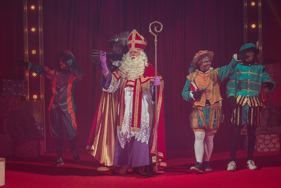 Selbstverständlich ist „Sinterklaas“ - Rob Ronday verkörpert die Bischofsgestalt in Perfektion – mit seinen Begleitern eingetroffen und wohnt der Vorstellung auf seinem goldenen Thron bei.