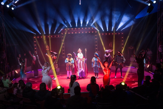 Im Chapiteau herrscht eine wohlig warme Atmosphäre. Der große elegante und dank zahlreicher Lichter funkelnde Artisteneingang, raffiniertes Licht und wabernder Nebel lassen die Spannung in den Logen und auf dem fünfreihigen Gradin steigen. Schließlich startet die Show vor bestens besetzten Rängen und wird mittels eines ausgezeichneten Lichtdesigns und erstklassiger Musikauswahl perfekt in Szene gesetzt. Im Sinterklaas Circus wird das artistische Programm in eine kleine Geschichte, die sich an die jüngsten Besucher richtet, eingebettet und integriert die Heiligenfigur geschickt ins Geschehen.