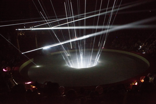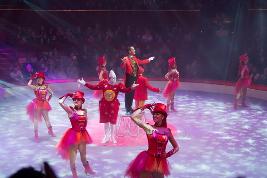 Der Komiker Rob Torres animiert zu Showbeginn das Publikum zu applaudieren und fängt den Beifall in zwei kleinen Holzkisten ein. Dann setzt das Orchester, dass leider die Show nicht komplett begleiten darf, kraftvoll ein und die Lichtregie demonstriert nachhaltig die Möglichkeiten der Anlage. Per Hubbühne erscheinen die Salto Dancer, Weißclown Alberto Caroli, Rob Torres und „Monsieur Loyal“ Michel Palmer aus den Katakomben des Gebäudes inmitten der Manege. Nach der Begrüßung durch den eloquenten Sprecher des Hauses ist René Casselly mit einem seiner Elefanten, der nur per Stimme gelenkt wird, mit einem ersten kurzen Auftritt zu erleben.