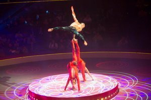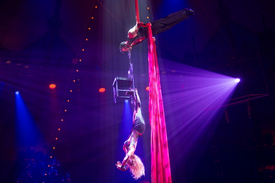 Ives und Ambra Nicols arbeiten ihre „Love Story“ an den Strapatentüchern, die zu Beginn von Ives gekonntem Live-Gesang getragen wird. Begeistert verfolgt das Publikum die Aktionen hoch unter der Kuppel und feiert das Paar bei seinen Tangosequenzen in der Manege mit lebhaftem Applaus. Ein neu einstudierter Trick erhöht den Spannungsmoment in der Trickfolge. Ambra nutzt die untere Quersprosse eines Stuhls, den ihr Partner mit den Zähnen hält, als Trapezstange. Nachdem Ambra in einem furiosen Wirbel aus der Kuppel herunter sicher in den Armen ihres Partners gelandet ist wird das Paar frenetisch gefeiert.