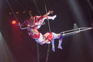 Hier an der „Geburtsstätte“ des Genres des "Fliegenden Trapez" (Jules Leotard flog hier am 12. November 1859 als erster Mensch frei zwischen drei Trapezen) bieten nun die Flying Mendonza mit südamerikanischer Lebensfreude eine äußerst schwungvolle Darbietung. Die zwei Fliegerinnen und zwei Flieger zeigen verschiedenste Tricks und auch der legendäre dreifache Salto gelingt sicher im ersten Versuch. Ein effektvolle Passage beschließt die Evolutionen.
