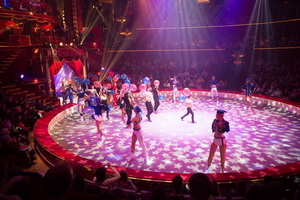 Der zweite Teil der Show beginnt mit einem furiosen Auftritt des Orchesters. Temperamentvolle Soli, verstärkt zudem mit einem Trompetenspiel von Joseph Bouglione, wird die Zeit bis alle Besucher ihren Platz eingenommen haben, rasant überbrückt.