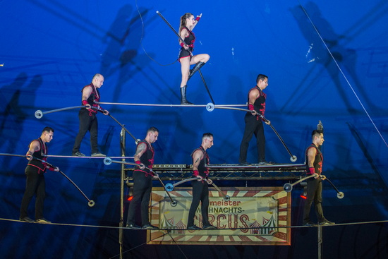 Mit einem Paukenschlag beginnt diese an Highlights reiche Show. Die "Los Ortis" begeistert mit ihrem Können auf dem Hochseil. Ein breiter Querschnitt der hochkarätigen Tricks des Genres – Auf- und Abgang über Schrägseile, Bocksprung, dreifaches 2-Mann-Hoch, Seil springen, Sprung über bis zu drei Partner und Einiges mehr – wird in erstklassiger Manier dargeboten. Selbstverständlich findet der mit südamerikanischem Temperament vorgetragene Auftritt in einer gelungenen Siebener-Pyramide seinen spannungsgeladenen Höhepunkt.