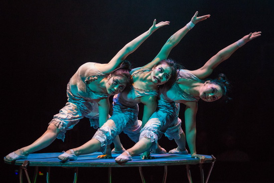 Die Puje Girls bieten variantenreiche Kontorsionen in erstklassiger Ausführung dar. Immer wieder werden die Körper in extreme Positionen gebracht und zahlreiche Handstände erhöhen noch einmal den Schwierigkeitsgrad der Arbeit. Der finale doppelte Mundstand versetzt weite Teile des Publikums in ungläubiges Erstaunen.