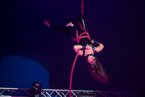 Zwei weitere Luftnummern sehen Miss Andrea als Akteurin. Zunächst windet sie sich in einem schwarzen Lack-Catsuit um ein rotes Vertikalseil. In immer wieder neuen Varianten legen sich die Seilschlingen um ihren Körper, um alsbald in effektvollen Abfallern wieder gelöst zu werden. Auch der zweite Auftritt findet hoch unter der Kuppel des Chapiteau statt. Am Ringtrapez werden zahlreiche, kraftvoll ausgeführte Haltetricks und Balancen dargeboten.