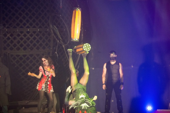 Rammstein-Songs und Melodien aus bekannten Horrorfilmen begleiten die Show, zu deren Beginn sich der Grusel-Clown und alle die dunklen Gestalten ein Stelldichein auf der Bühne geben. Gerome Frank tritt als Zeremonienmeister in Erscheinung und in kühlem Ton schleudert er seine Worte in einen "abgerissenen Arm" und fordern den ultimativen Applaustest, denn "nur wer genügend applaudiert, wird dieses Zelt wieder lebend verlassen".