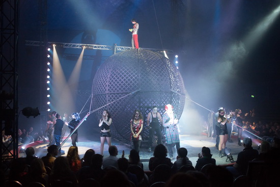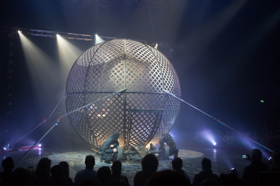 Den Schlußpunkt des abwechslungsreichen Programms setzen drei Fahrer in der Motorradkugel. In bekannter Weise steigert sich der Schwierigkeitsgrad der einzelnen Fahrten, nachdem zunächst vier Zuschauerinnen von einem Motorradartisten in der Kugel umkreist wurden.