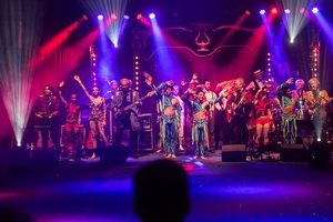 Natürlich verlangt das Publikum, wie gewünscht, nach einer Zugabe und bereitwillig kommt die Band dem nach. Noch einmal kommen die Artisten auf die Bühne, dann fällt der Vorhang endgültig.