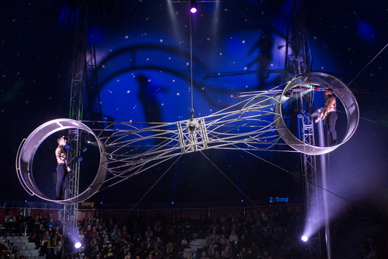 Das große bunte Bild mündet in den Auftritt von Alexia Casselly am Schwungseil. Mit diesem Genre feiert sie im Wintercircus Premiere. Ihr rasanter Vortrag bietet u. a. Eine Reihe spektakulärer und risikoreicher Abfaller, die für Nervenkitzel im weiten Rund sorgen.