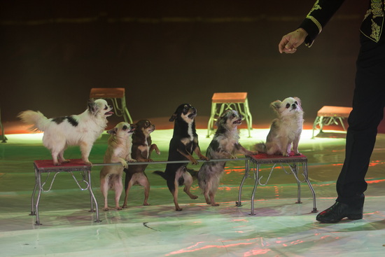 Die beiden Tier-Darbietungen werden von Adele und Franco Oliveira zu Gesicht gebracht. Zunächst faszinieren sechs Aras das Publikum. Die farbenprächtigen Papageien hissen eine Flagge, fahren Rad, Rollschuh und Roller. Sie sortieren Ringe und beherrschen großes Elektroauto. Die gebotenen Flugkünste lassen die Zuschauer begeistert applaudieren. Mit der Präsentation von sechs Chihuahua-Hunden startet der zweite Programmteil. Die possierlichen Zwerghunde springen durch Reifen sowie über flache Barrieren und beherrschen eine Reihe weiterer Tricks.
