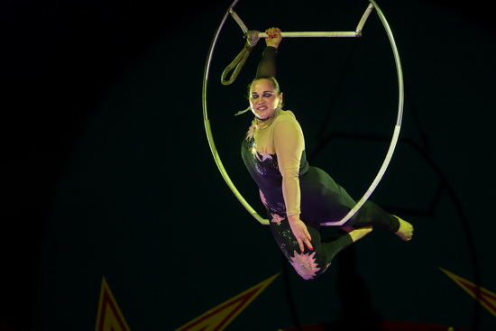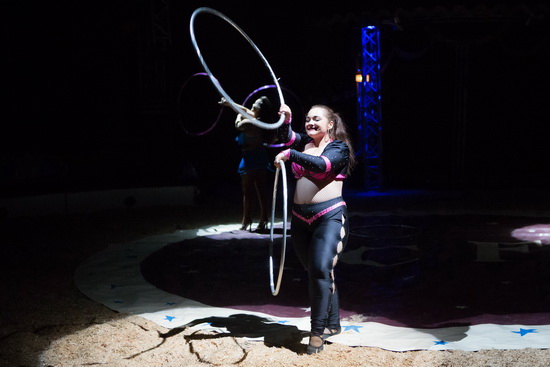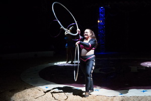Zu mitreißenden südamerikanischen Rhythmen arbeitet Miss Santana ihre Hula Hoop Nummer. Viele der gängigen Tricks des Genres erfolgen in flottem Ablauf auf einander und zwei weitere Damen im Hintergrund der Manege verleihen dem Auftritt zusätzlichen Drive.