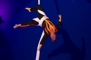 Am Vertikalseil zeigt Scarlett Hein ihr Können. Vielfältige Absteher erfolgen im Wechsel mit rasanten Wirbeln und mit dem furiosen ausdrehen an einem Arm erreicht die Darbietung ihren Höhepunkt.
