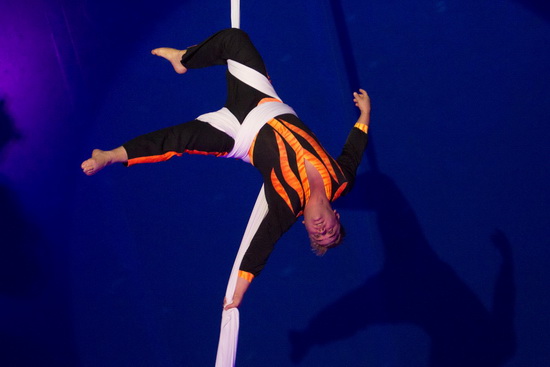 Elegante Flüge an den Tuchstrapaten zeigt Benny Frank. Kraftvoll werden die Tricks ausgeführt und mit weiten Flügen die Kuppel gefüllt. Spektakuläre Abfaller sorgen für den notwendigen Nervenkitzel.