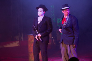 Nahtlos schließt sich die erste Darbietung, die Gruppenjonglage der Messoudi' s, an. Nach einigen, mit weißen Bällen gebotenen Mustern, erfolgt der größte Teil der Routinen mit Keulen. Variantenreich und sicher läuft die Darbietung ab. Spektakulär werden mit den Keulen Zigarre, Hut und Sonnenbrille vom Kopf eines still verharrenden Partners entfernt.