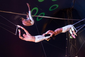 Die „Hermanos Rodriquez“ präsentieren eine rasante Ikarier-Darbietung. Temperamentvoll agieren die beiden coolen mittelamerikanischen Artisten mit Macho-Attitüde. Flott reihen sich die diversen Saltos und Pirouetten aneinander und mit gutem Verkauf steigert ein Scheinsturz die Publikumswirksamkeit des Auftritts.