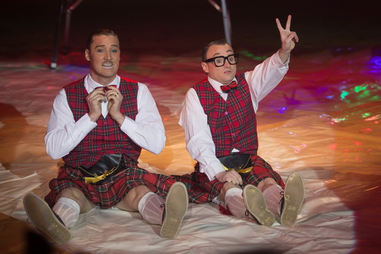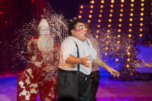 Klassische Clownerie bieten die José Mitchell Clowns mit ihrem Wasserentrée. In bestens bekannter Weise gehen die beiden Auguste beherzt zu Werke um Weißclown Julia zu foppen. Doch aller Eifer führt nicht zum gewünschten Ziel und schlussendlich sind die Auguste triefend nass.