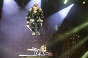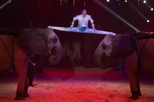 Der akrobatische Teil des Programms mit seinen modern und rockig gestalteten Nummer bildet einen lebhaften Kontrast zu den eher traditionellen Tierdarbietungen.