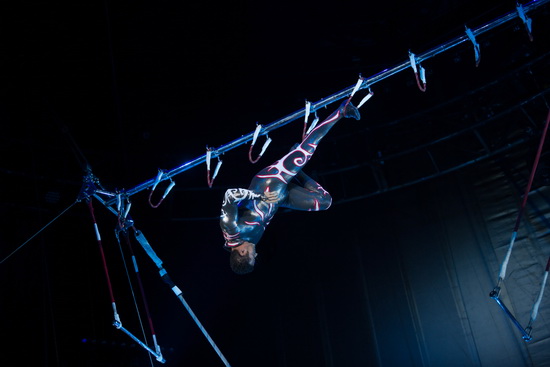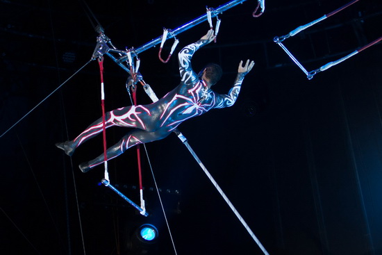 Super Silva bietet mit seinem Deckenlauf einen sensationellen Akt hoch in der Kuppel des Chapiteau. Nach einigen Haltetricks am Trapez hangelt er sich kopfüber, nur mit den Füßen haltend, von einer zur nächsten Seilschlaufe. Dabei zeigt er Kehren und Wendungen, die vielen Zuschauern den Atem stocken lassen. Doch damit noch nicht genug des Nervenkitzels springt er abschließend direkt unter der Kuppel, auf jedwede Art von Sicherung verzichtend, von einem zu einem anderen Trapez. Chapeau.