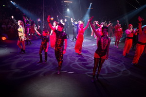 Zum kurz gehaltenen Finale kommen die Artisten durch Housch ma Houschs Tür auf die Bühne und werden vom Publikum, dessen Erwartungen erfüllt wurden, mit frenetischem Applaus gefeiert.