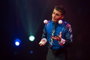 Balljongleur Michael Ferreri bietet mit seinem leistungsstarken und frischem Auftritt ein besonderes Highlight der Veranstaltung. Er beginnt seine variationsreichen und sehr sicher vorgetragenen Routinen mit drei weißen Bällen. Nach jeder Tour fällt ein weiterer Ball aus der Kuppel in seine Hand und der Schwierigkeitsgrad der Muster steigert sich zunehmend. So werden schließlich sieben Bälle hinter dem Rücken und als Spitzenleistung neun Bälle in der Luft gehalten. Zum Höhepunkt der Darbietung platziert Michael Ferreri einen Ball auf seiner Stirn und fügt mit schnellen Griffen sieben, auf einem Gestell liegende Bälle zu einem vertitablen Muster.