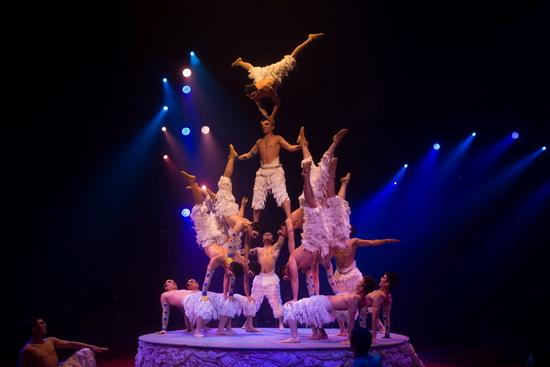 Im zweiten Programmteil präsentieren achtzehn Artisten Handbalancen zu Tschaikowskys „Schwanensee“. Die Hommage an das weltberühmte Musikstück folgt einer strengen, selbst die kleinsten Bewegungen regelnden Choreographie und die Kostüme symbolisieren Gefieder. Bis zu fünf Etagen hohe Pyramiden, der Obermann longengesichert, vereinen bis zu zwölf Artisten, während der Rest der Truppe den oftmals langwierigen Aufbau tänzerisch überspielt. Die komplizierten und anspruchsvollen (Handstand)-Figuren werden perfekt ausgeführt, allerdings will, ob des strengen und sehr inszeniert wirkenden Ablaufs der Funke nicht so recht aufs Publikum überspringen.