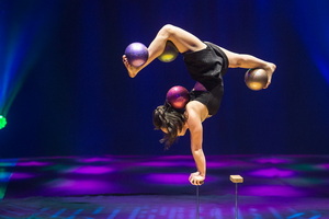 Handstandartistin Sofia Popi Speratti präsentiert einen stylischen und ideenreichen Act, in den sie auch vier bunte Gummibälle integriert hat. Nach einer originellen Einleitung zusammen mit dem Ballett, in gleichem schwarzen Kostüm und roten Schuhen wie die Artistin, erfolgen die Handstandfiguren auf zwei Handstäben. Die dabei in Fuß- und Kniegelenken eingeklemmten, oder im Nacken ruhenden Bälle lassen den Auftritt fröhlich und spielerisch erscheinen und machen, auch dank exzellenter Präsentation, den erhöhten Schwierigkeitsgrad beinahe vergessen.