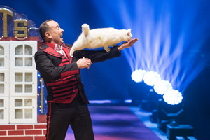 Die schneeweißen Katzen von Vlad Olandar sind in dieser Spielzeit die einzigen Tiere im Kölner Weihnachtscircus. Die bestens bekannte Darbietung wird, wie stets, mit der Präzision eines Schweizer Uhrwerks dargeboten. Flaschenlauf und Balance über eine Stange werden von Sprüngen und dem Abschuss eines Pfeiles gefolgt. Nach weiteren Tricks erklimmen zwei Stubentiger eine hohe Perchestange, die ihr Herr und Meister auf der Stirn balanciert.