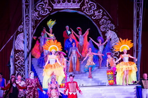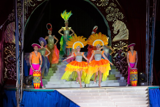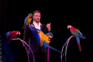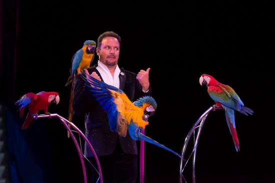 Jongleur Picasso jun. fehlt in dieser Saison bisher aus gesundheitlichen Gründen und so fand das Programm mit den anmutigen Papageien von Alessio Fochesato seine Fortsetzung. Die Tricks mit Zuschauerbeteiligung und die „akrobatischen“ Übungen der Aras kommen ausgezeichnet an. Die eleganten lautlosen Flüge der großen Papageien kommen in diesem riesigen Raum besonders gut zur Geltung.