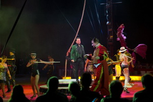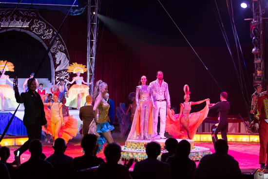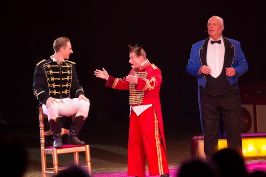 Wie eh und je beginnt die Show mit einer großen Parade der Mitwirkenden. Das Ballett tanzt zu Michael Jackson Songs und das Gros der Artisten kommt die Showtreppe hinab in die Manege und wird beim betreten eines Podestes aus dem Off vorgestellt. Sprechstallmeister Nicolai Tovarich heißt willkommen und wie stets verspricht er „Attraktionen in der Manege, auf der Bühne und in der Luft“.