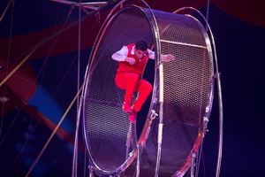 Verletzungsbedingt kann Crazy Wilson seine Darbietung auf dem Todesrad derzeit nicht arbeiten und wird seit ein paar Tagen durch das „Duo Danger“, Mustafa Danguir und seine Partnerin, vertreten. Auf dem chromblitzenden, außergewöhnlich geformten Requisit sind Seil springen und Blindlauf die Top-Tricks des Auftritts.