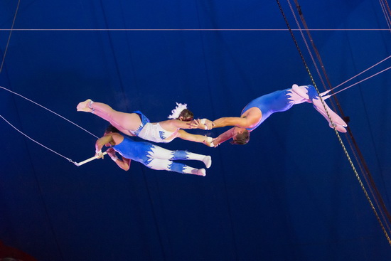 Hervorragende Luftartistik bieten die „Flying Zuniga“ am Fliegenden Trapez. Je zwei Fliegerinnen und Flieger bieten erstklassig ausgeführte Tricks, darunter den Doppelsalto sowie eine Passage mit einer Fliegerin als Hauptakteurin. Beide Herren zeigen einen erstklassig ausgeführten dreifachen Salto, den Alex Michael mit verbundenen Augen sicher beherrscht. Völlig zu Recht gibt am Ende dieser herausragenden Darbietung zum dritten Mal Standing Ovations während der Show, nachdem zuvor auch Fumagalli in gleicher Weise vom Publikum gefeiert wurde.