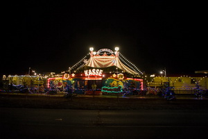 Traditionell war der wunderbar geschmückte Circus direkt an der Einfahrt in den Ortsteil Lachen-Speyerdorf aufgebaut. Lichterketten an den Abseglungen des hohen, vor Jahresfrist erworbenen Chapiteau, am Fassadenwagen, am Zaun und vielen Wagen schaffen in Verbindung mit zahlreichen Weihnachtsbäumen und sonstigem Zierrat eine romantisch einladende Atmosphäre.