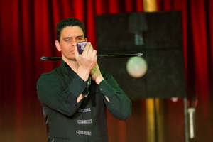 Zwei mitreißende, spannungsgeladene Darbietung bietet das portugiesische Duo Silva. Zunächst präsentieren sich die Beiden als sichere und geschickte Armbrustschützen. Die unterschiedlichen Ziele, Spielkarten und im Mund gehaltene Ballons werden perfekt getroffen. Der Rückwärtsschuß per Spiegel gelingt genauso, wie das durchtrennen einer Zeitungsseite von der Kante her. Schließlich löst ein Schuss nacheinander weitere Armbrüste aus, so dass der letzte Pfeil einen Apfel über dem Kopf des Schützen trifft.