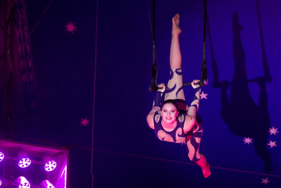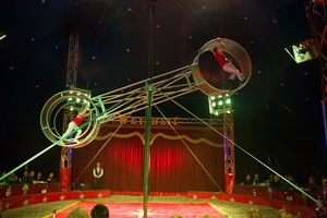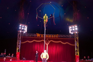 Im weiteren Verlauf der Show arbeitet Bohumila Navratilova eine umfassende Trickfolge am Trapez. Sie startet am ruhenden Requisit, dann erfolgen die weiteren Abläufe in vollem Schwung. Gekonnte Balancen und kraftvoll ausgeführte Halteposen erfolgen in gekonnter Ausführung.