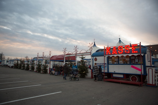 Historische, weiß-blau lackierte Oberlicht-Schindelwagen, die einstmals bei den großen Circusunternehmen des vorigen Jahrhunderts - wie z.B. Hagenbeck, Althoff und Sarrasani - dienten, bilden eine großartige Fassade und der agile Direktor weiß zu jedem seiner Schätzchen etwas Interessantes zu berichten. Der nostalgische Fassadenzaun glänzt im warmen Schein der guten alten Glühbirnen und bietet zusammen mit den reich geschmückten Weihnachtsbäumen wahres weihnachtliches Flair.
