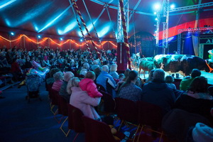 Im Chapiteau stehen ein großes Bankgradin und elegante Logen bereit, die zahlreichen Besucher aufzunehmen. Edel ist das Zeltinnere dekoriert. Roter schweren Samt schmückt die Logenbrüstungen und bedeckt Masten und Sturmstangen. Lichtschläuche sind zwischen den Rondellstangen angebracht und zaubern zusammen mit den blauen Scheinwerfern, die von den Rondellstangen in Richtung Kuppel strahlen, für eine angenehm-festliche Atmosphäre. Eine Leuchtpiste rahmt die Manege ein und der große Artisteneingang aus dunkelrotem Samt nimmt den hinteren Zeltbereich ein. Ein Gitterrohrrahmen umschließt die Gardine und trägt zahlreiche Beleuchtungselemente. Dem Artisteneingang vorgebaut ist ein hohes Podest auf dem die hervorragende Life-Band ihren Platz hat. Jeffrey Frank – Keyboard und erstklassiger Gesang, Marlon – Schlagzeug - und Marvin – Trompete – sind mit ihrem hervorragenden Spiel Garant für einen perfekten, die Show exzellent tragenden Sound.