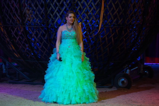 Die charmante und wortgewandte Juniorchefin Juliana Schmidt ist auch im Weihnachtsprogramm als eloquente Manegensprecherin präsent. Die sympathische junge Frau heißt das äußerst zahlreich erschienene Publikum willkommen und führt galant durch den Abend.