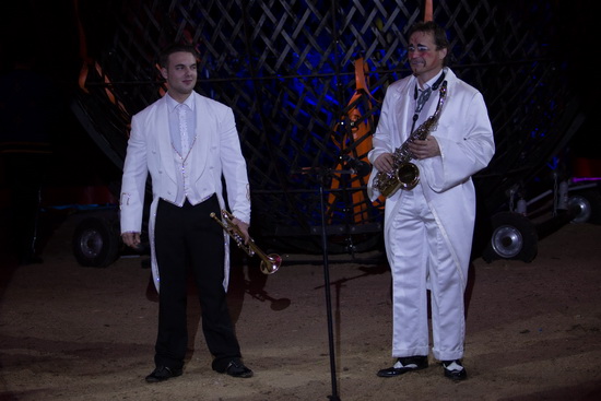Marvin Frank auf der Trompete und Karel Kaiser mit seinem Saxophon leiten das stimmungsvolle Finale aller Artisten ein. Das begeisterte Publikum applaudiert frenetisch und Juniorchefin Juliana Schmidt, in einem prächtigen Finalkostüm, verabschiedet ihre Gäste und verspricht ein Wiedersehen im kommenden Dezember mit einer völlig neuen Show.