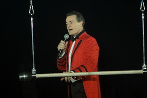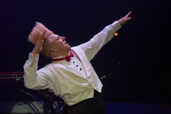 Nachdem die Artisten ihre Positionen in der Manege eingenommen haben, flammen die Lichter auf und Thierry Fééry, der auch in diesem Jahr wieder als eloquenter und engagierter „Monsieur Loyal“ seine Artisten dem Publikum näherbringt, begrüßt die Anwesenden im weiten, restlos besetzten Rund. Gekonnt singt Monsieur Fééry das bekannte französische Circus-Chanson „Sous le plus grand Chapiteau du Monde“ und lässt das Opening so stimmungsvoll ausklingen.