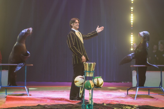 Als einziges Ensemblemitglied ist Erwin Frankello mit zwei Auftritten zu erleben. Im ersten Teil der Show präsentiert er in einer äußerst trickreichen Darbietung seine beiden Seelöwen. Artistische Tricks – u. a. ein „Einflossenstand“ und verschiedene Balancen erfolgen in spielerischer Ausführung, so spielen sie miteinander Kopfball und reichen sich „heruntergefallene“ Requisiten gegenseitig an. Mit viel komödiantischem Talent ausgestattet zeigen sie, dass Seelöwen singen und schnarchen können, geben ihrem Vorführer einen Klaps auf den Hintern oder küssen ihn überraschend.